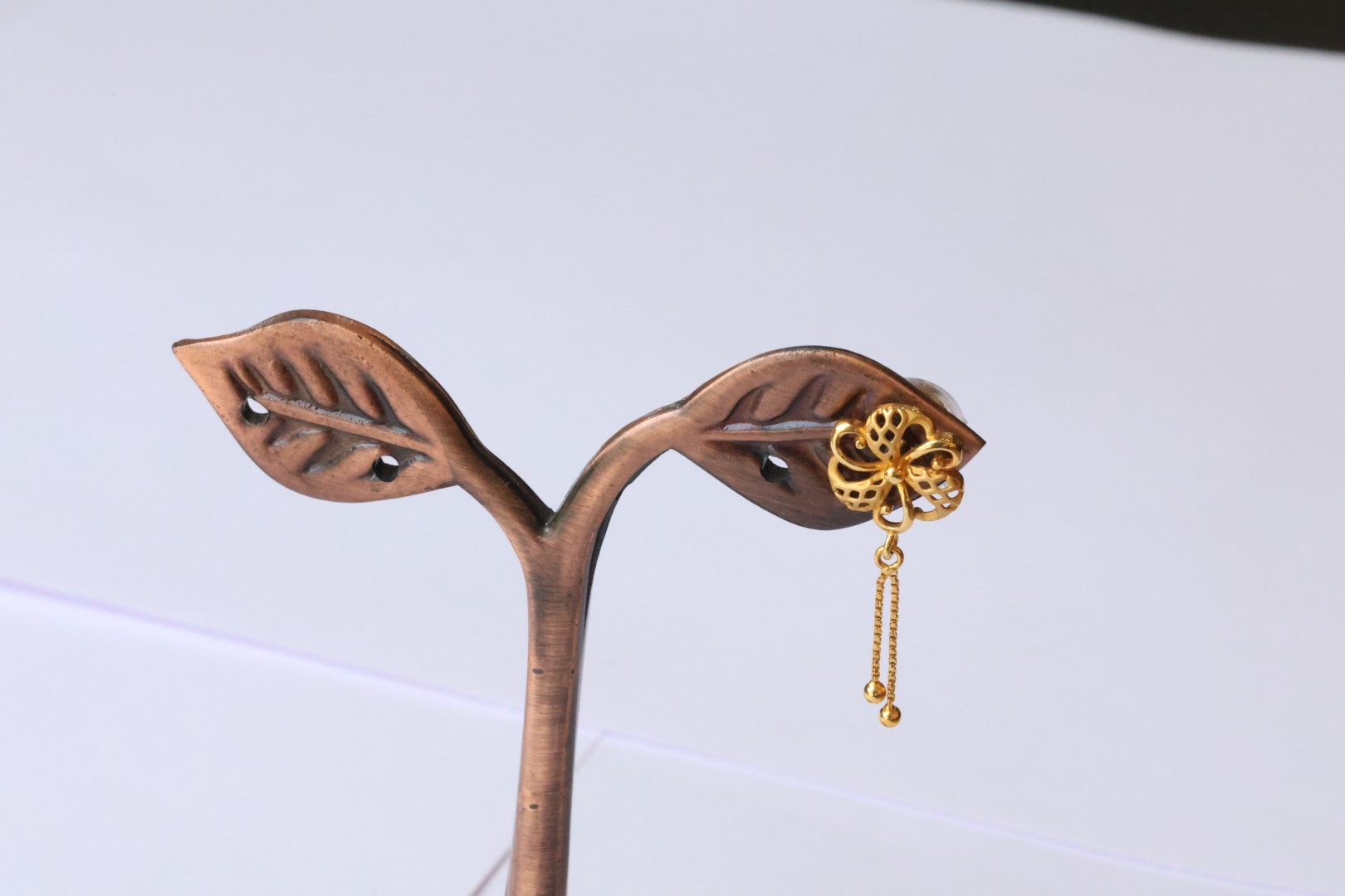 The Heritage Filigree Flower Drop Earrings showcase the timeless beauty of detailed metal artistry. Designed with delicate floral motifs, the fine filigree work creates a lace-like pattern that reflects skilled craftsmanship and heritage design.